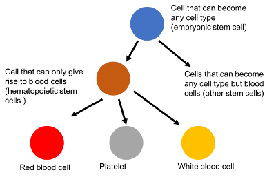 In the blood example, the blood stem cell can only form blood cells. So you wouldn’t be able to use a blood stem cell to make a heart. You’d want a muscle one.