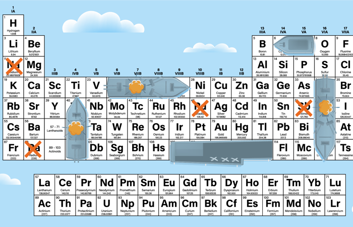 Identify elements of the periodic table by doing an activity based on the classic game of Battleship.