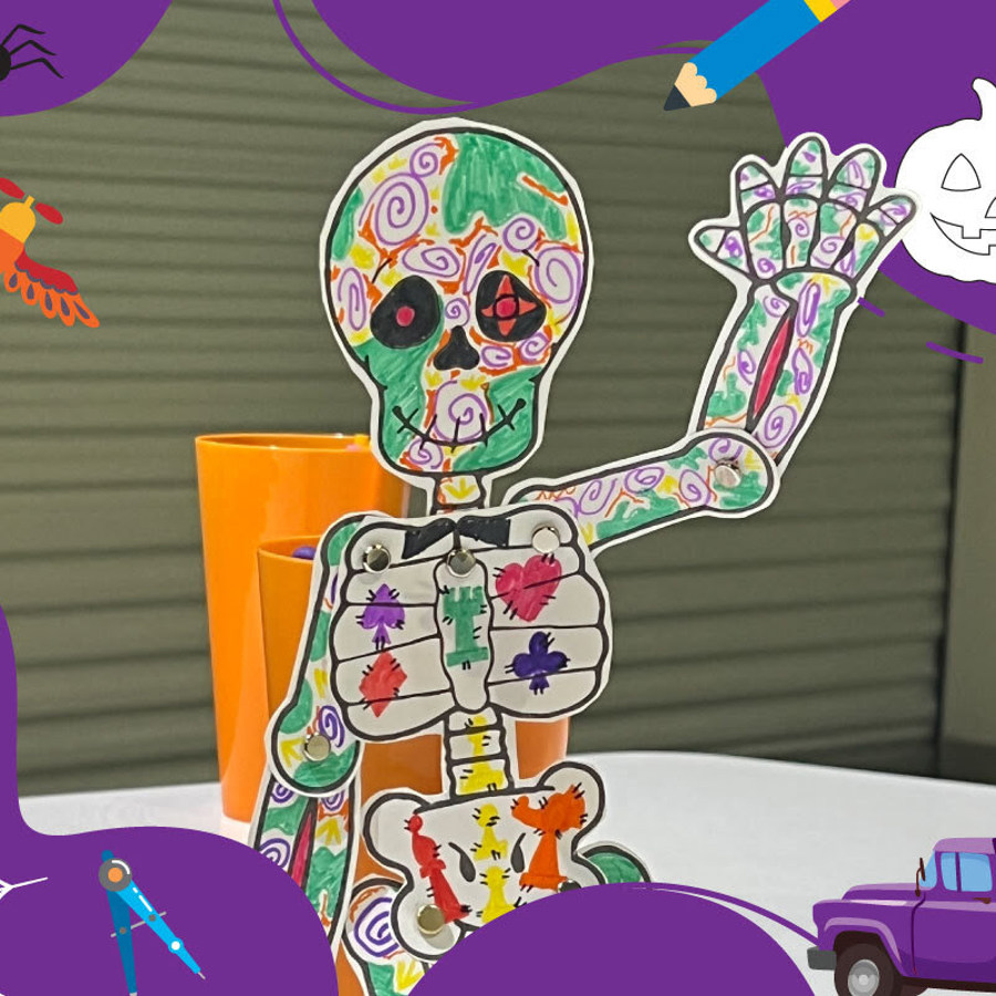 - Create a dancing skeleton: What do you get when you combine a spooky skeleton with mechanical motion? A dancing skeleton! Decorate a paper skeleton to show off your favorite parts of the halloween season then use paper fastener brads to make your skeleton dance around.